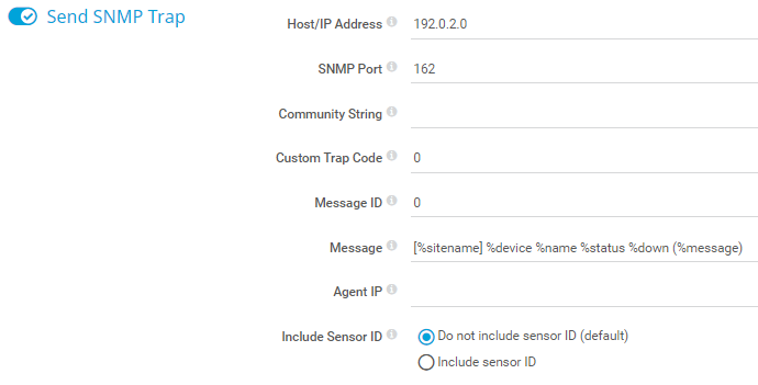 Define a subject that PRTG includes when it sends summarized notifications. The default subject is [%sitename%] %summarycount Summarized Notifications.