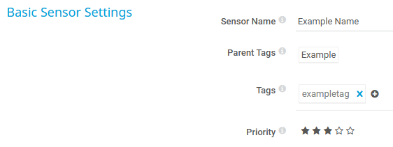 The sensor has the following default tags that are automatically predefined in the sensor's settings when you add the sensor: